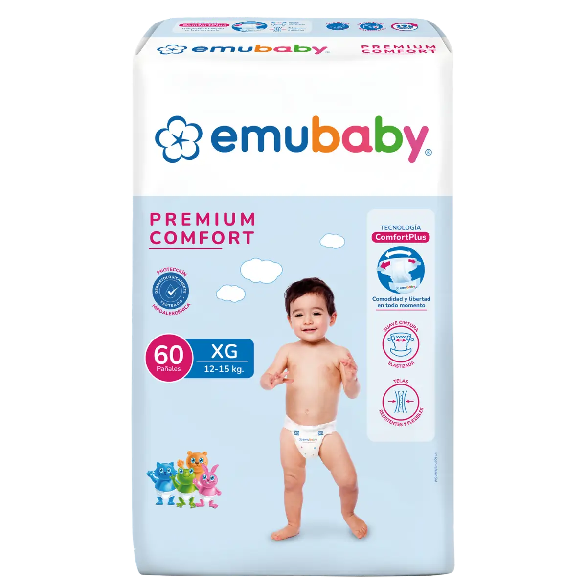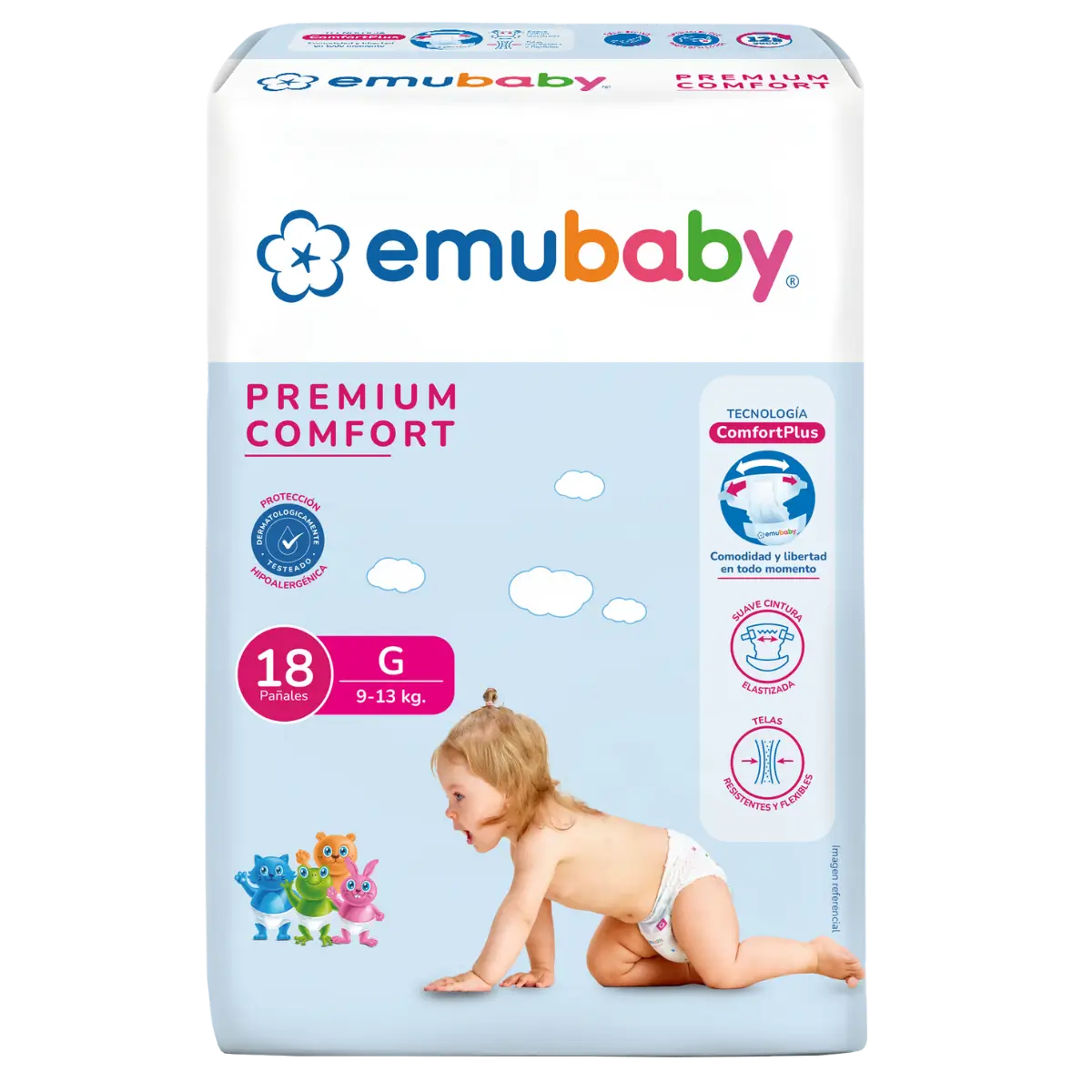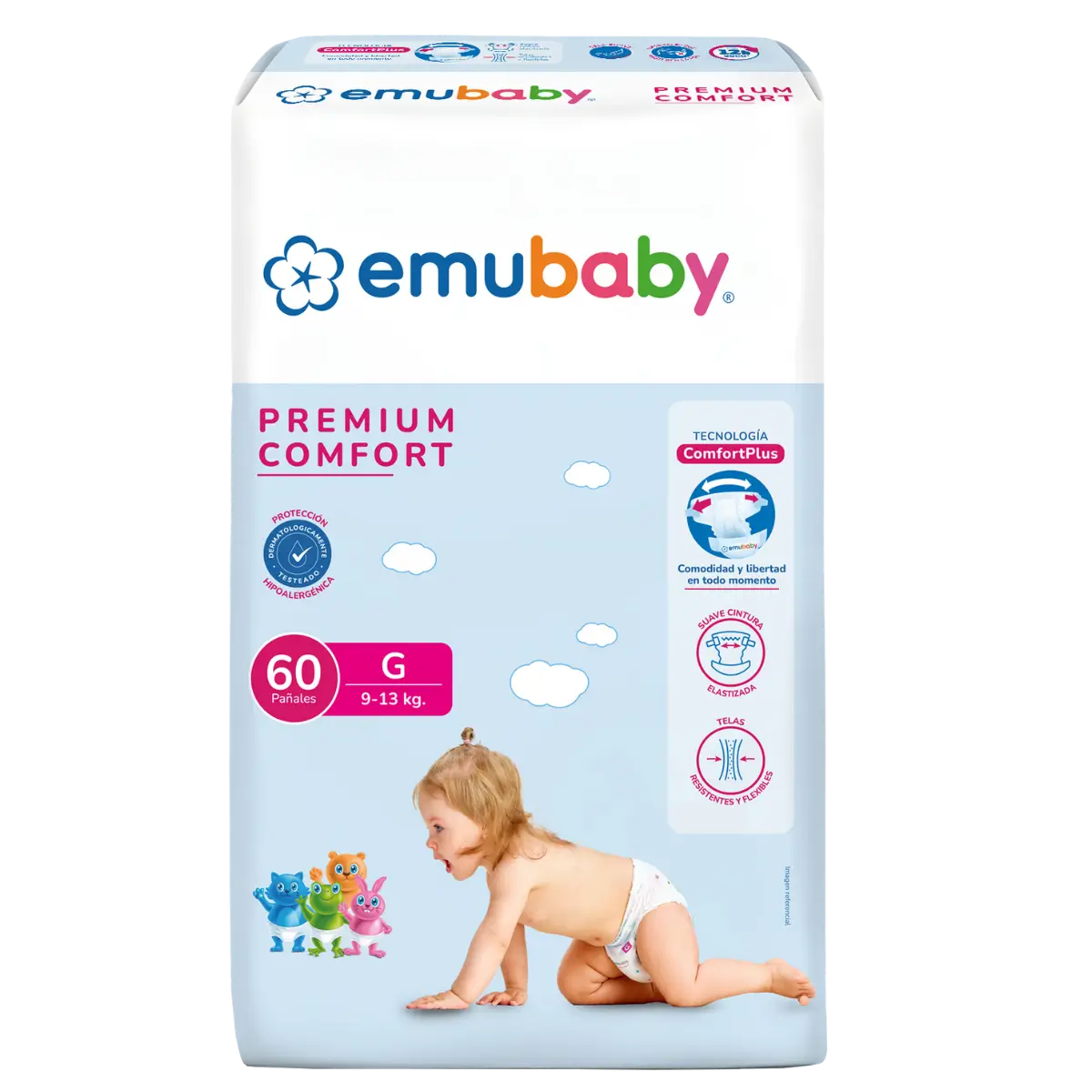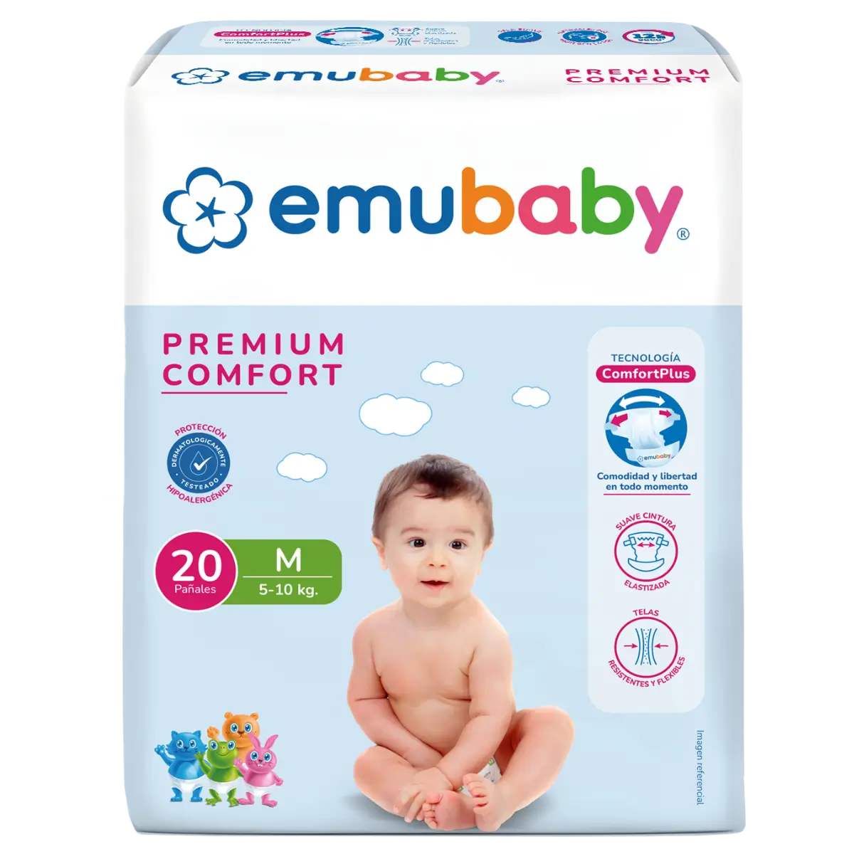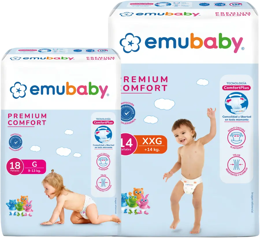 Emubaby Premium Comfort prioriza la libertad de movimiento y la comodidad con telas flexibles y cintura elastizada.