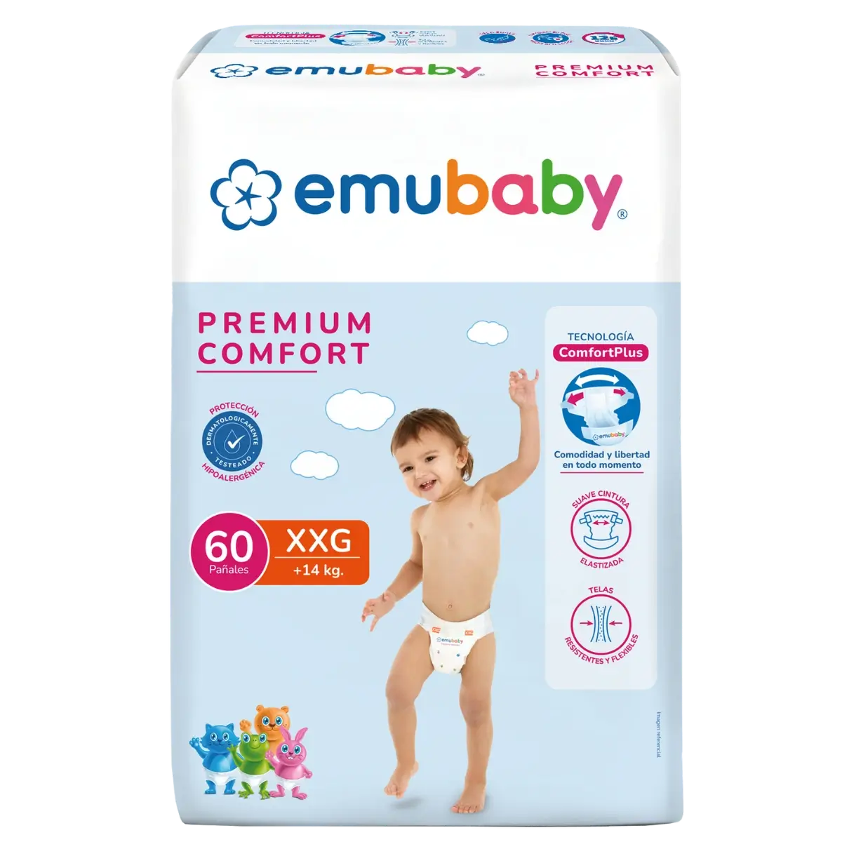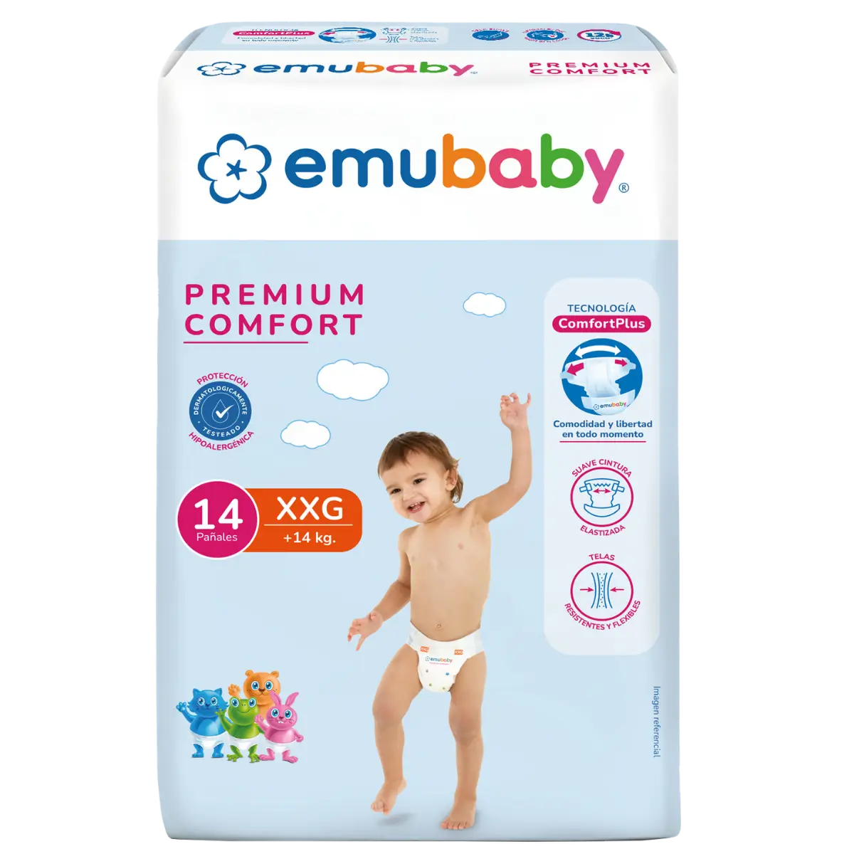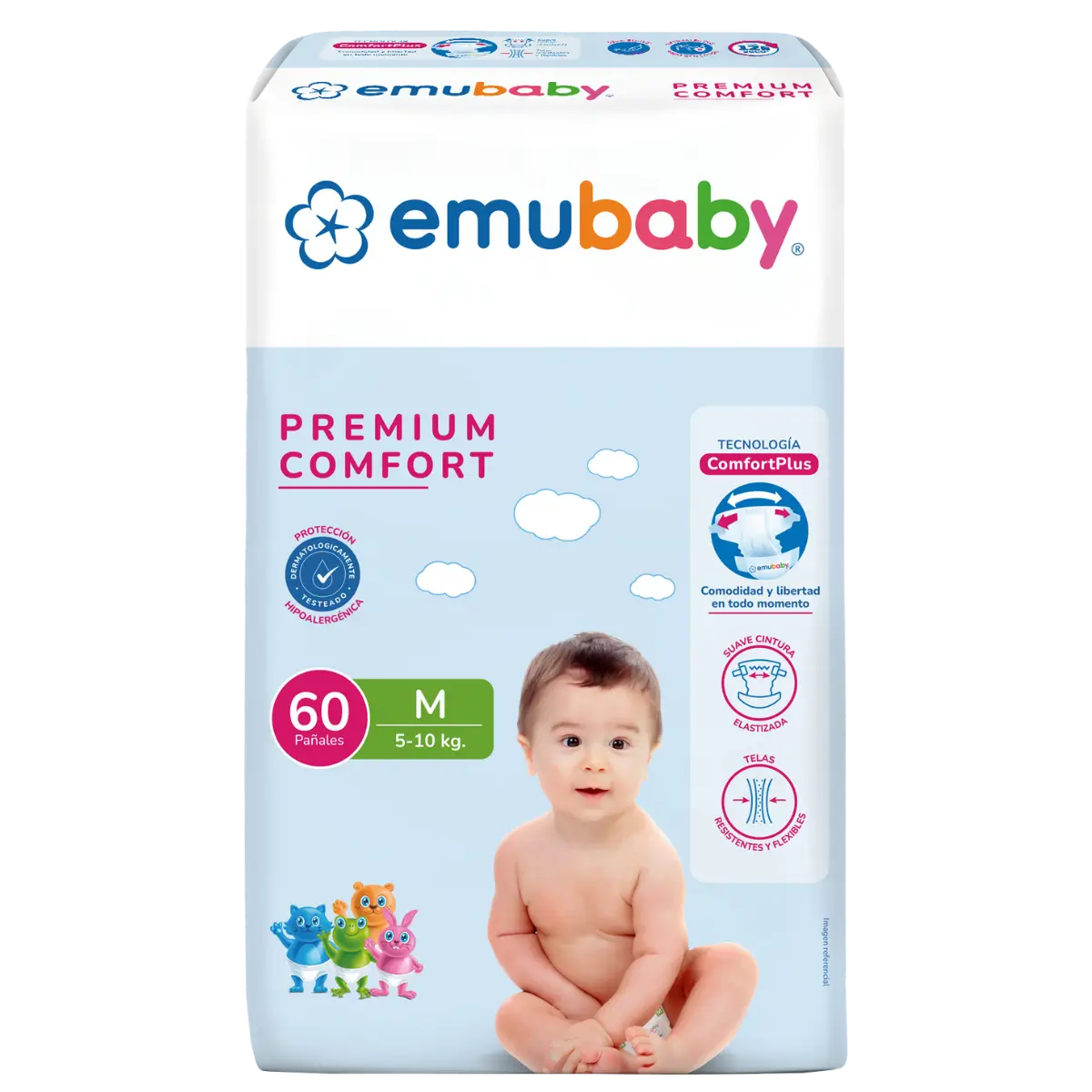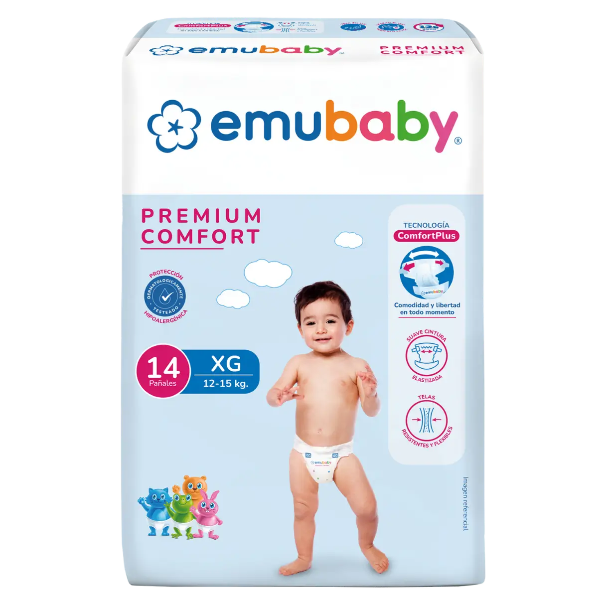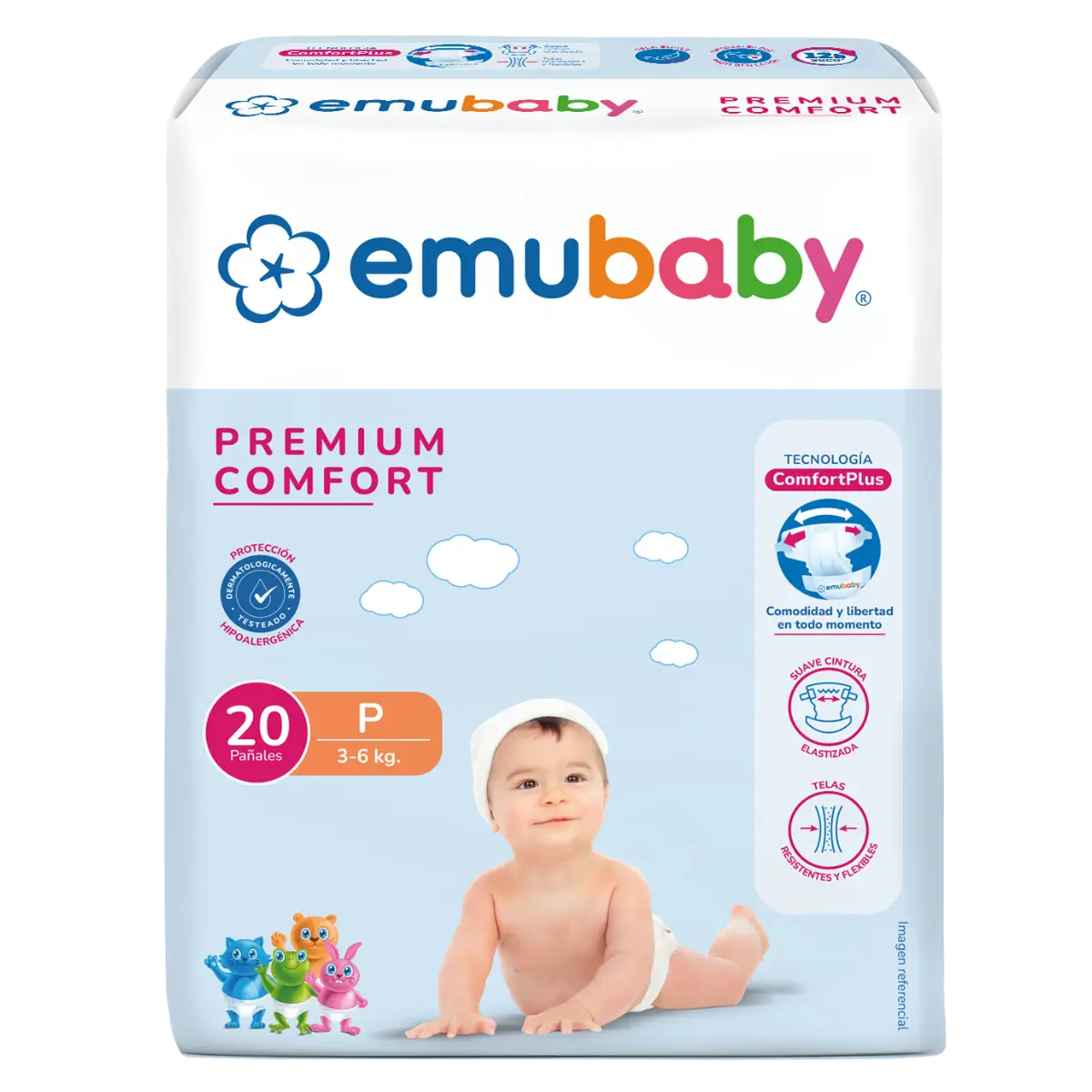 Emubaby Premium Comfort prioriza la libertad de movimiento y la comodidad con telas flexibles y cintura elastizada.