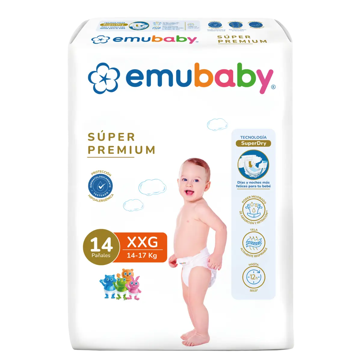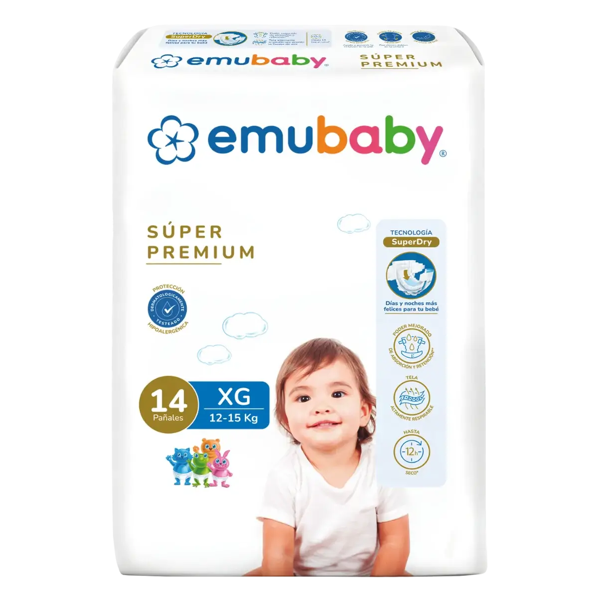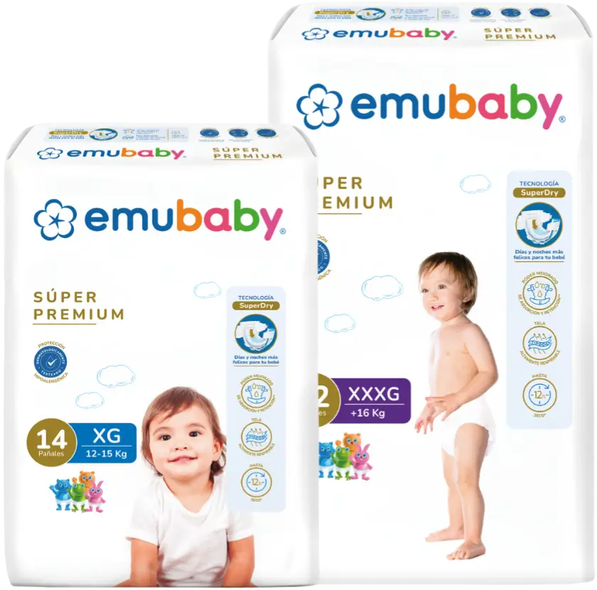 Emubaby Súper Premium destaca por su absorción avanzada y protección dermatológica para mantener al bebé seco por más tiempo