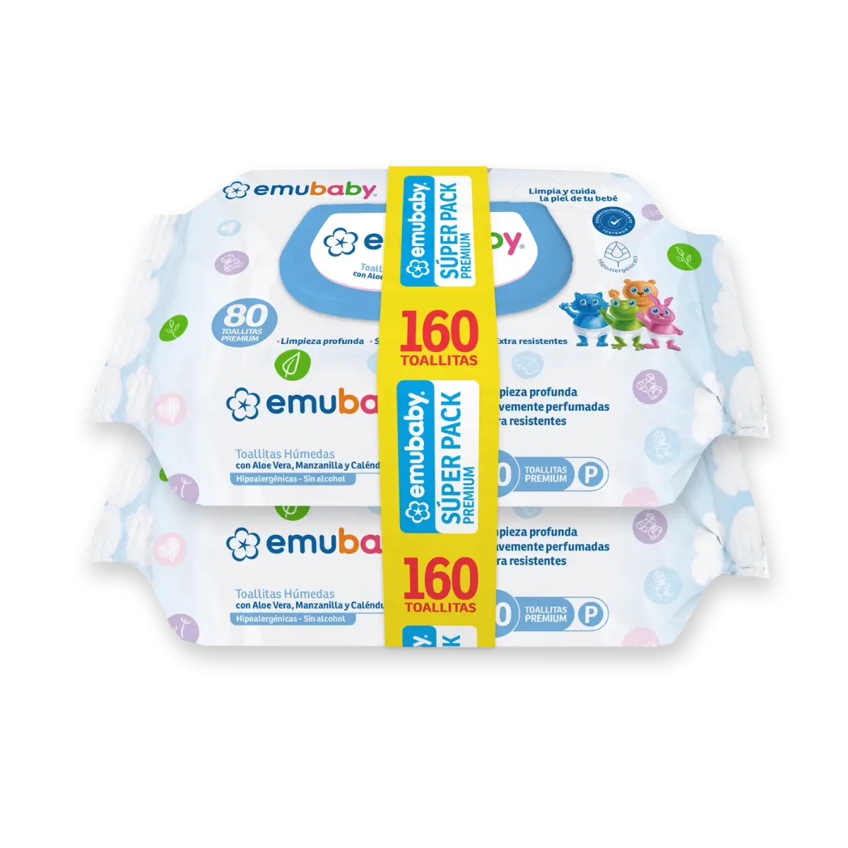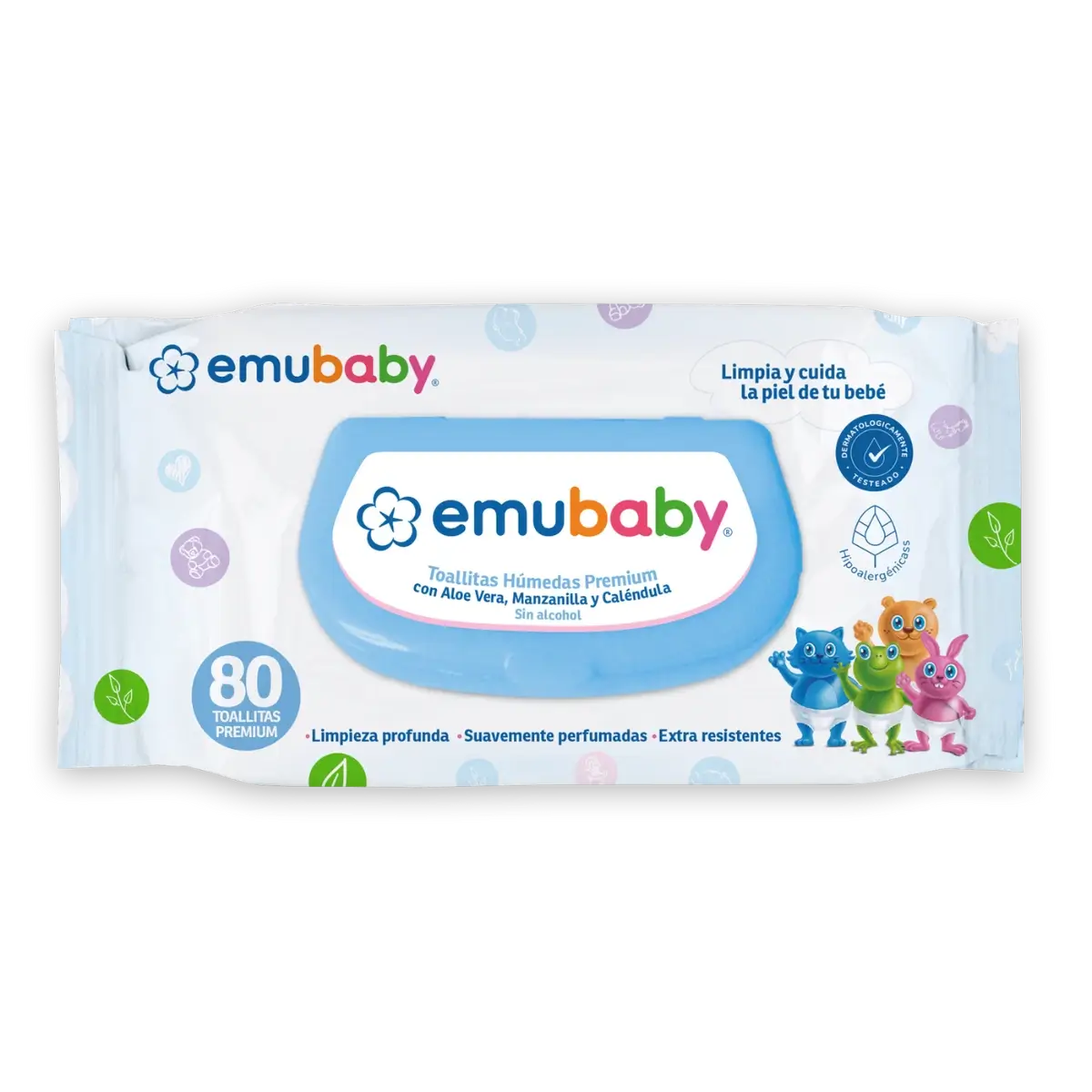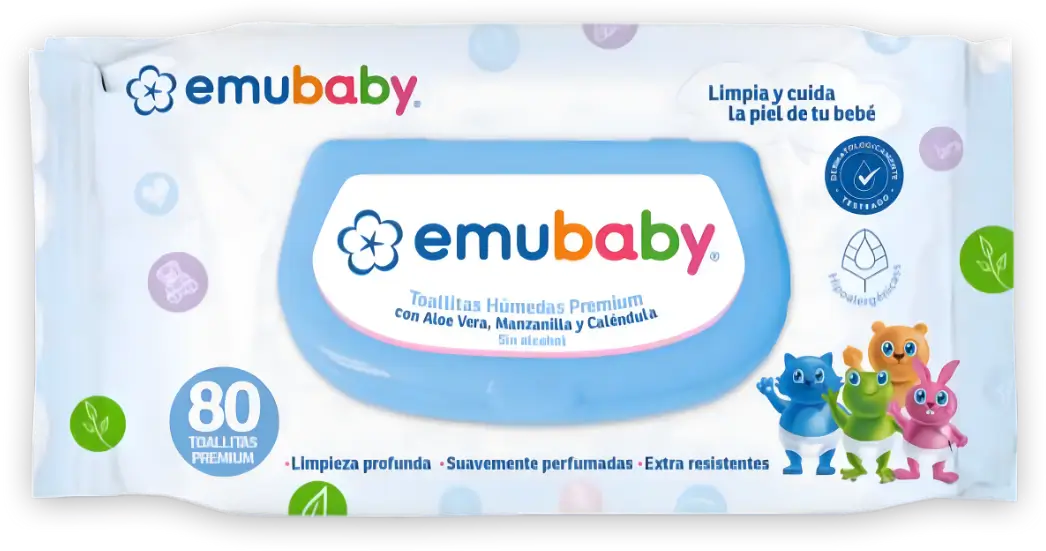 Las toallitas Emubaby Premium limpian en profundidad y, gracias a sus ingredientes calmantes, ayudan a hidratar y proteger la piel del bebé de posibles irritaciones.