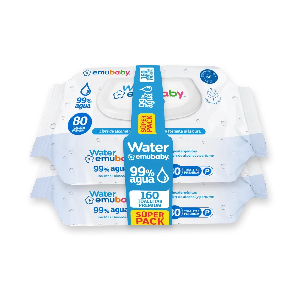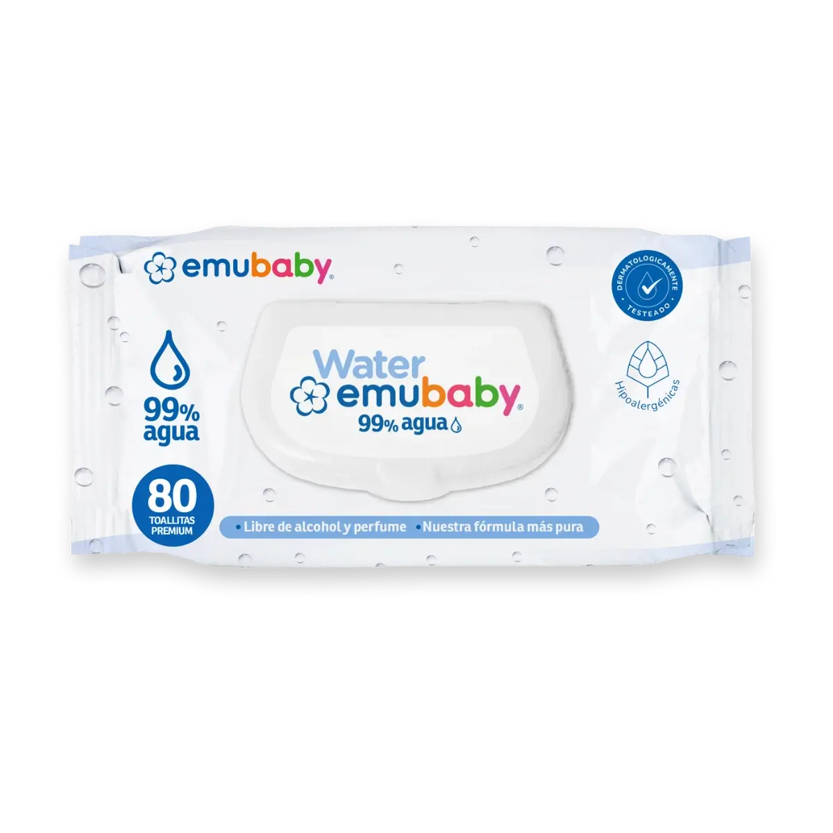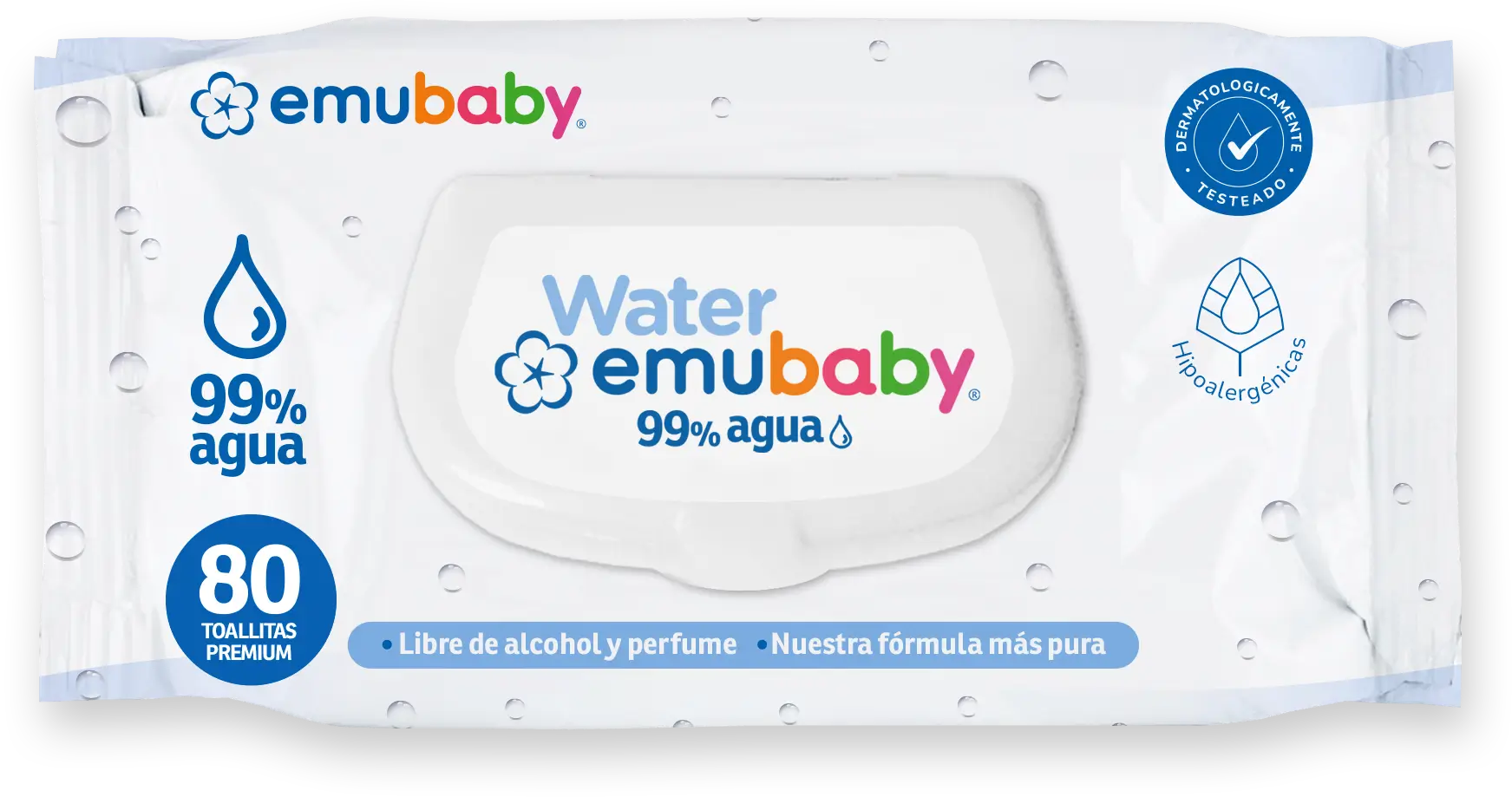 Emubaby Water 99% priorizan la pureza y el cuidado desde el nacimiento, al estar formuladas casi exclusivamente con agua y sin perfume ni alcohol.